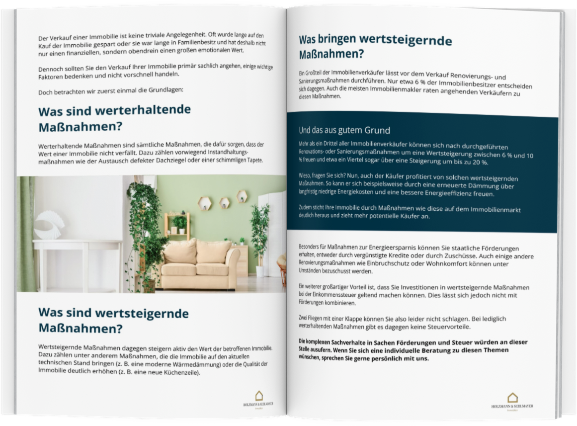 In diesem kostenlosen Ratgeber für Eigentümer verraten wir Ihnen, welche wertsteigernden Maßnahmen wann Sinn machen und welche Sie sich (tendenziell) sparen können.